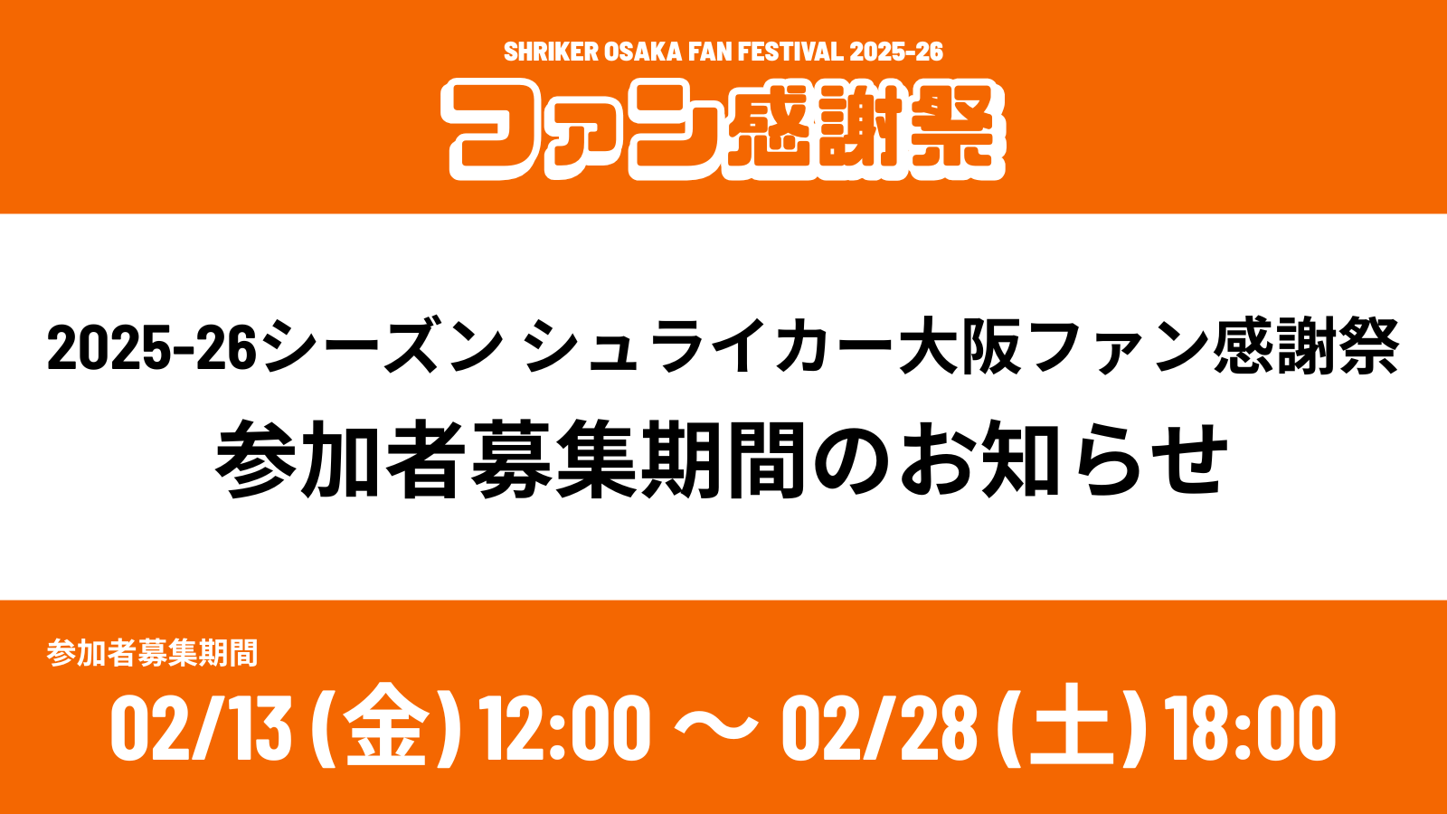 「2025-26シーズン シュライカー大阪ファン感謝祭」参加者募集期間のお知らせ