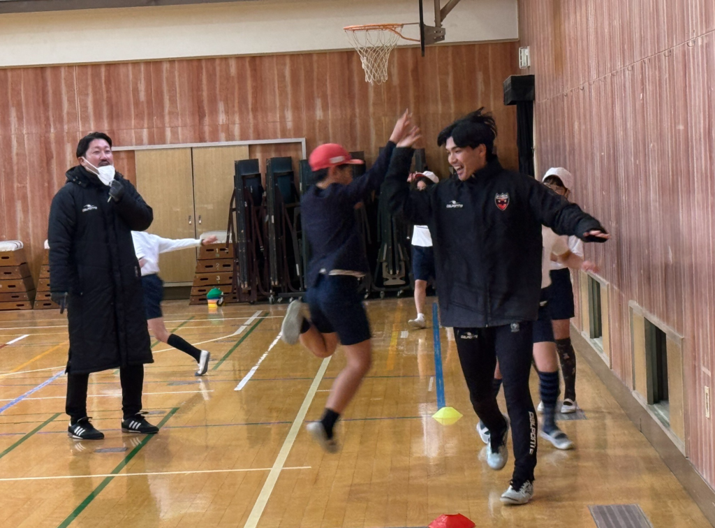 当日は林 浩平TOPチームコーチ兼アカデミーダイレクター、サテライト所属No.53 氏橋 潤選手、No.33 平山 楓選手が参加し、フットサルの楽しさや身体を動かすことの大切さを子どもたちに伝えました。競技経験の有無に関わらず、全員が積極的にボールに触れ、笑顔溢れる時間となりました。