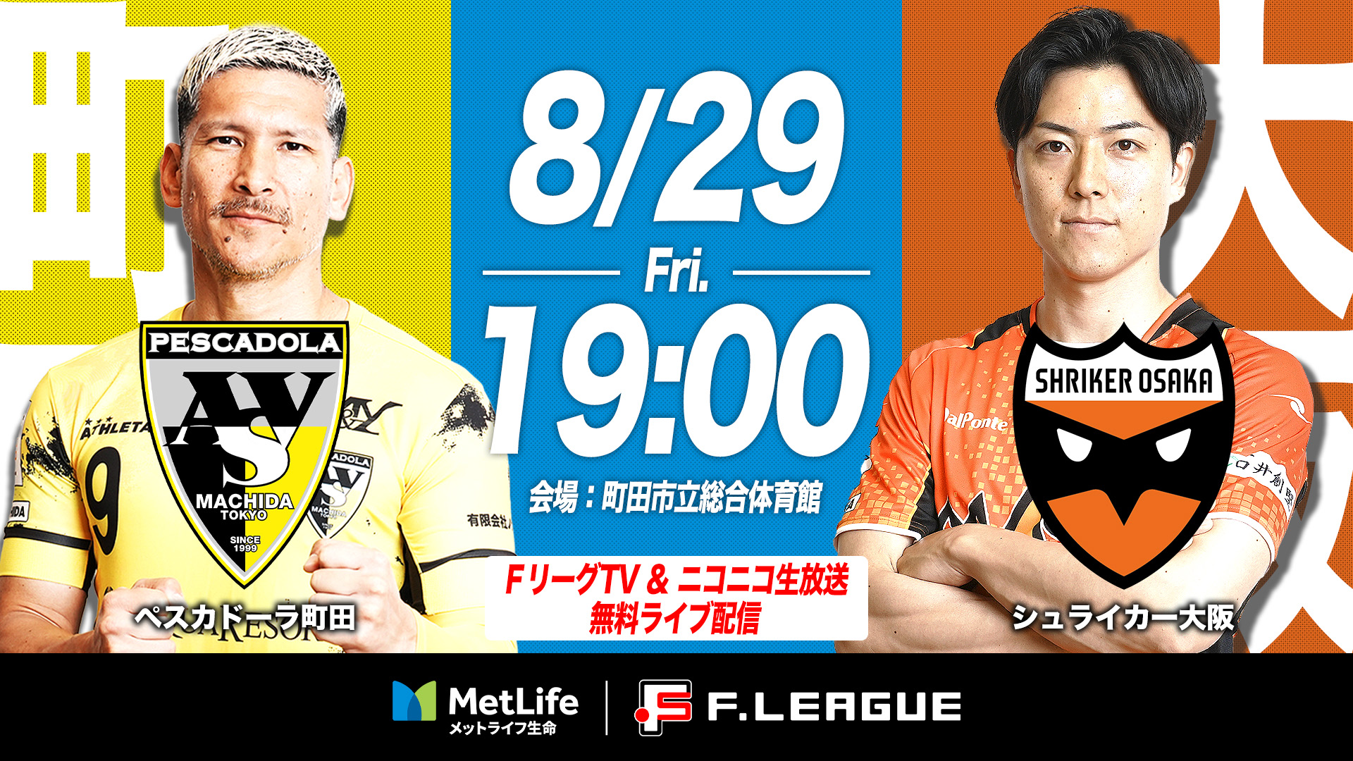 8/29(金)【FリーグTV×ニコニコ生放送】ペスカドーラ町田 vs シュライカー大阪 無料ライブ配信決定!
