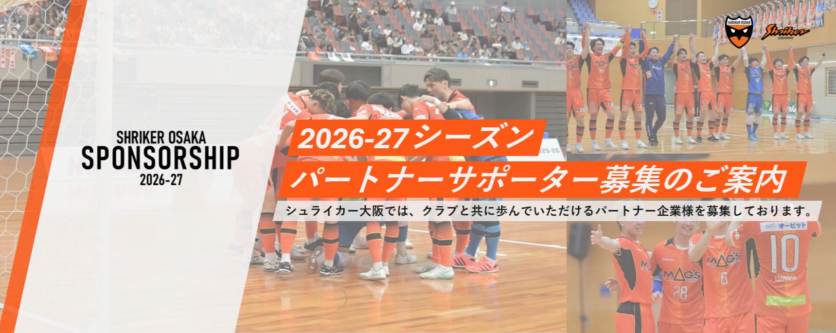 パートナーサポーターとは、シュライカー大阪が日本そしてアジアを代表するフットサルクラブに成長し、クラブ理念を実現していくために、その活動を支援していただくことを目的とするものです。
