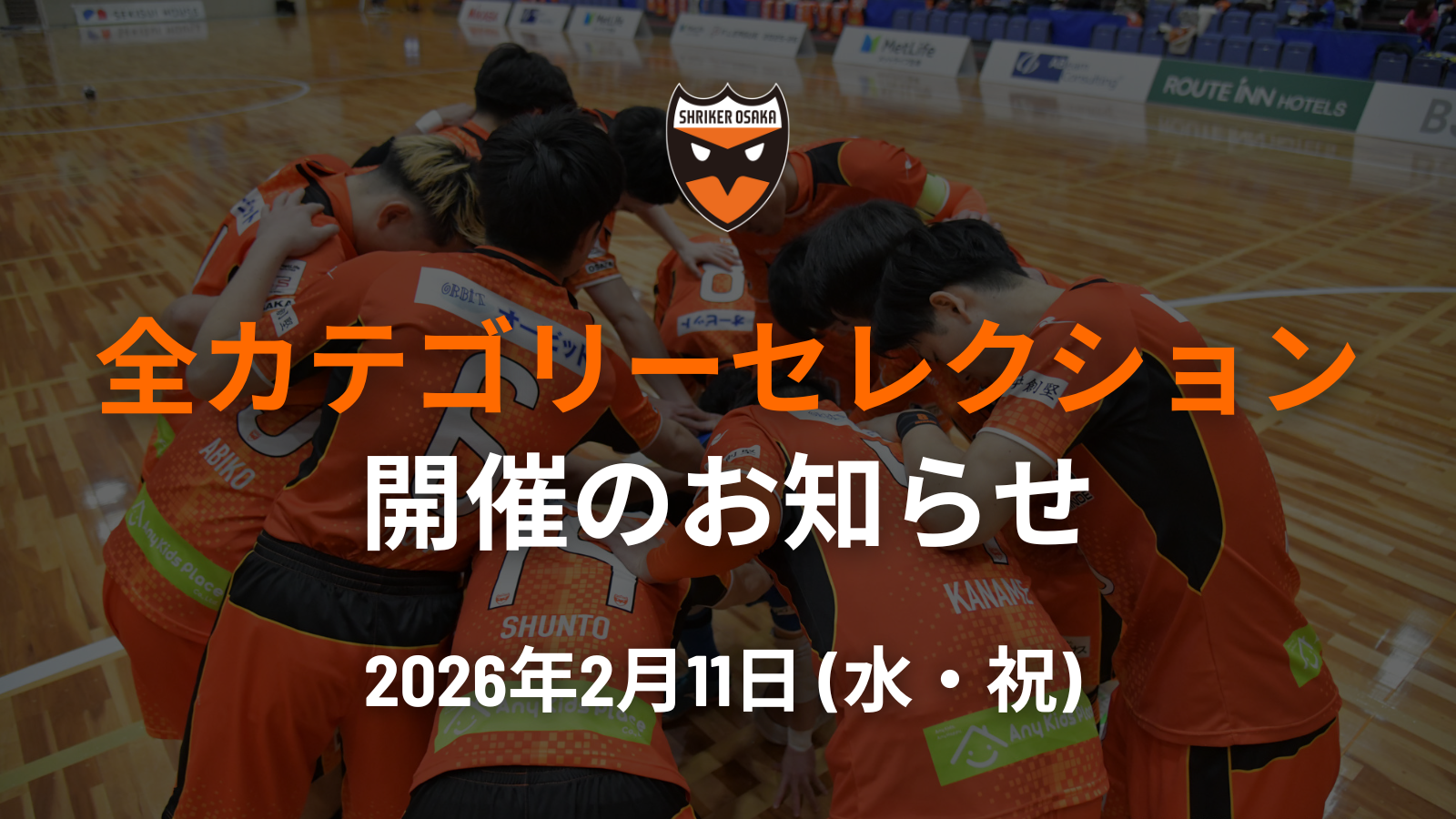 2月11日 (水・祝) 全カテゴリーセレクション開催のお知らせ