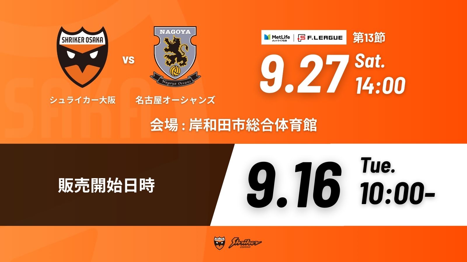 9/27(土) 14:00キックオフ(岸和田市総合体育館)